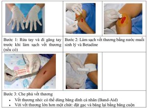 - Sát trùng vết thương hở bằng bông gạc và betadin
