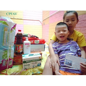 Giữa mùa dịch Covid, cả xã hội ai cũng đang gặp khó khăn, nhưng CPFAV vẫn mong được mọi người chia sẻ, “lá rách ít đùm lá rách nhiều”, để hỗ trợ các gia đình có trẻ bại não trong giai đoạn này. Hội ban đầu đã kêu gọi hỗ trợ 50 phần quà cho 50 gia đình, mỗi phần quà là hiện vật, bao gồm: 10kg gạo, 1 thùng sữa tươi, 1 túi bỉm cùng 1 chai mắm, muối, đường, lạc,…